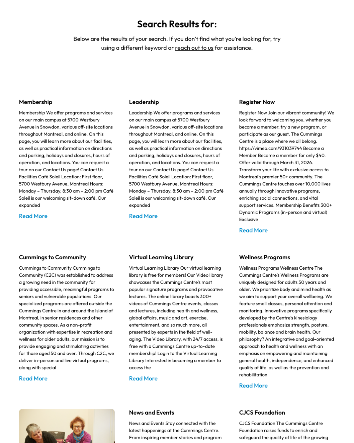 The Cummings Centre is open.