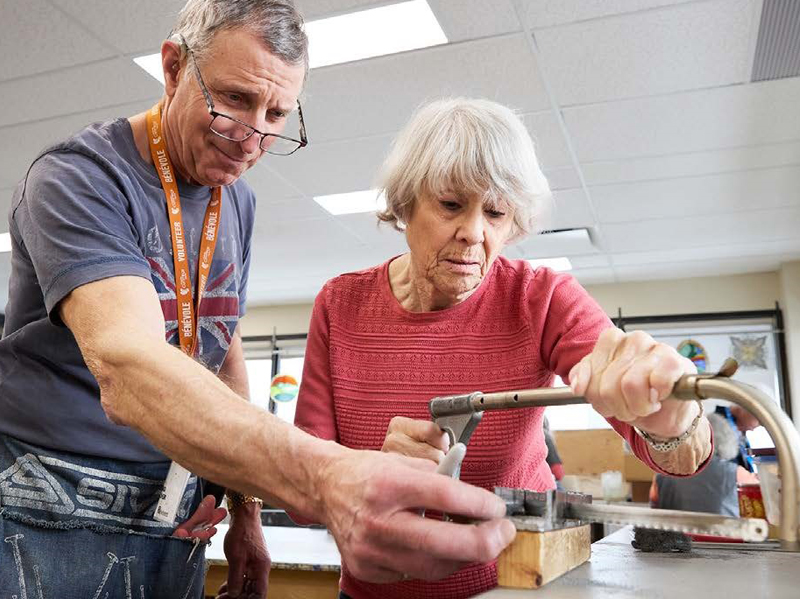 For Marty Cooper, it all started with a simple desire to reconnect with a craft that he remembered fondly: woodworking. With time and guidance, he improved so much that his instructor, Hershey Fitleberg’s, encouraged him to use his talent for a greater purpose. Marty shares: “I now work as a volunteer twice a week producing items to raise money for the Centre for sale in the gift shop.” There are so many different ways you can give back to your community! “Being at the Cummings Centre has given me that opportunity”, shares Marty.